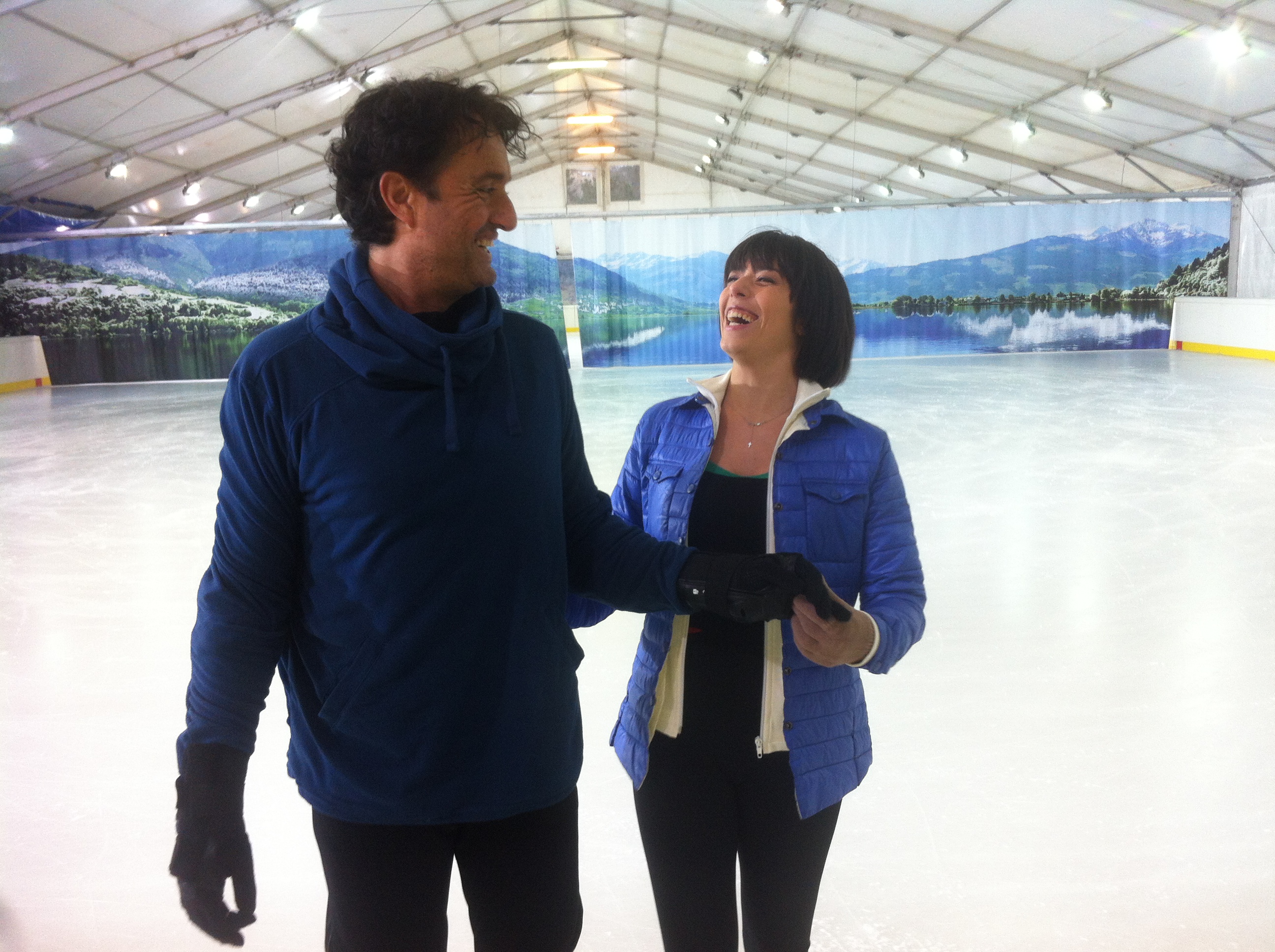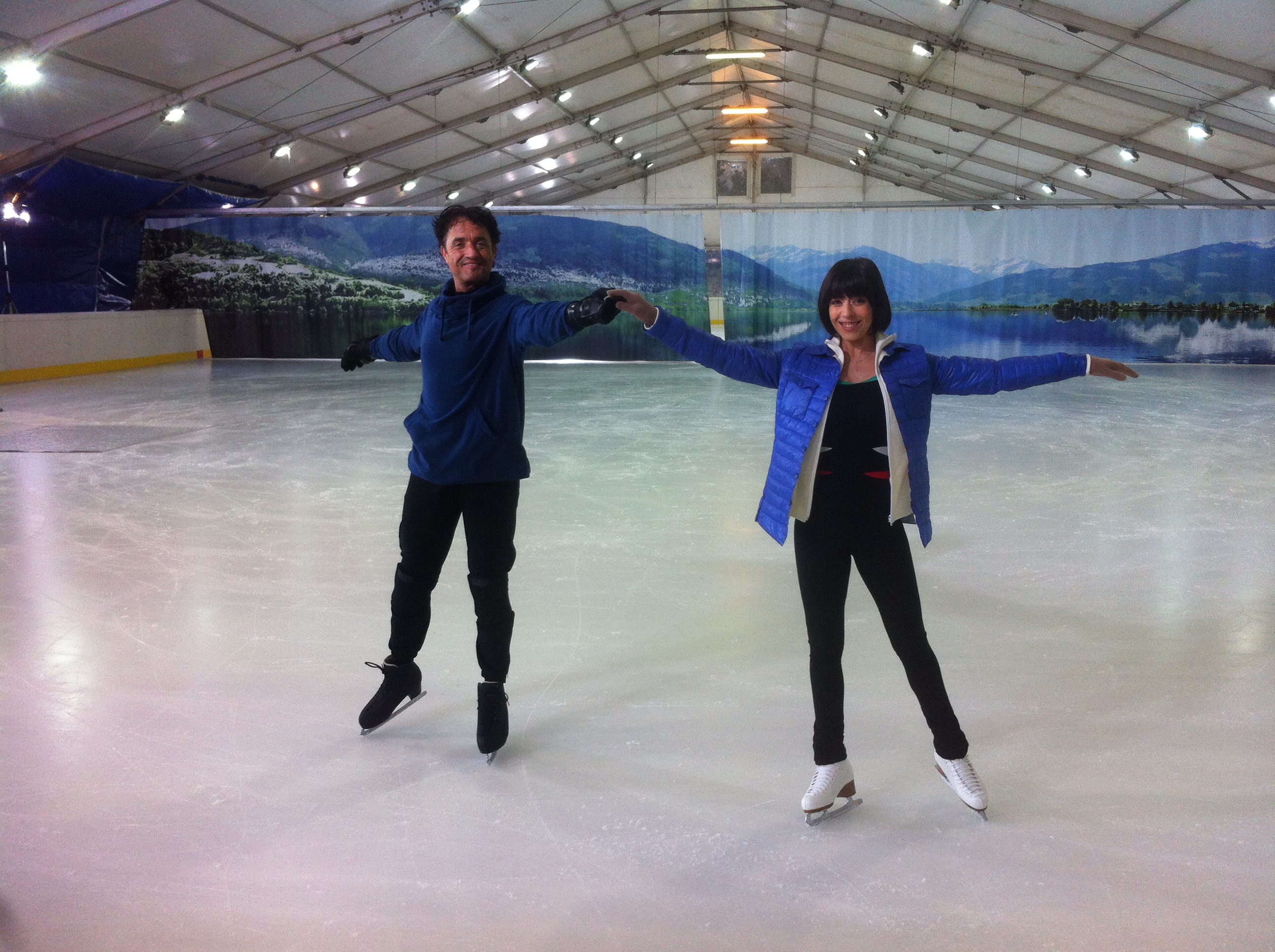 Spogliato dei panni da regista, da bravo allievo Giulio si fa dirigere dalla sua maestra Alice Velati. Questa avventura a notti sul ghiaccio è per Giulio Base un mix di ironia e divertimento . Sentiamo un pò cosa dice.